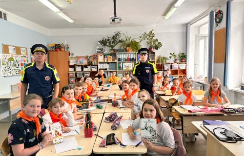 Сотрудники Госавтоинспекции проводят беседы по безопасности дорожного движения в летних пришкольных лагерях