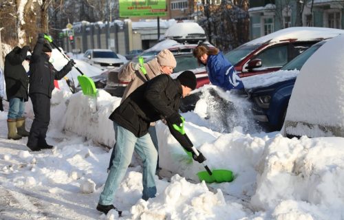 «Вместе весело копать»: активисты помогли коммунальщикам расчистить территорию перед МФЦ