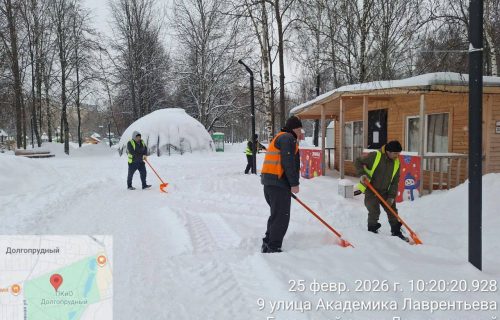 Вчера, сегодня, завтра: уборка снега в парках Долгопрудного продолжается
