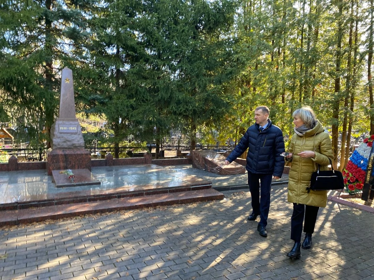 Исполнительный секретарь долгопрудненского отделения «Единой России» Светлана Балан и председатель муниципального Совета депутатов Дмитрий Балабанов посетили с монитонингом Братскую могилу – знаковый мемориал, где захоронены 13 военнослужащих, погибших при обороне Москвы.