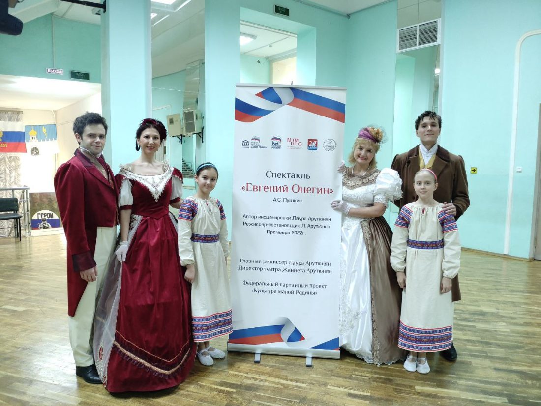 При поддержке партпроекта «Единой России» «Культура малой Родины» спектакль «Евгений Онегин» Долгопрудненского театра «Город» был представлен зрителям Сергиева Посада на сцене образовательно-досугового центра «Октябрь». Постановка, ставшая премьерой 32-го театрального сезона в театре «Город», собирала переаншлаг на гастрольном выезде, покорив сергиевопосадцев своей искренностью и пронзительной мелодикой сценографических решений, великолепием костюмов и талантом артистов. Спектакль «Евгений Онегин был поставлен в 2022 году режиссером Лаурой Арутюнян, благодаря субсидии партпроекта «Культура малой Родины».