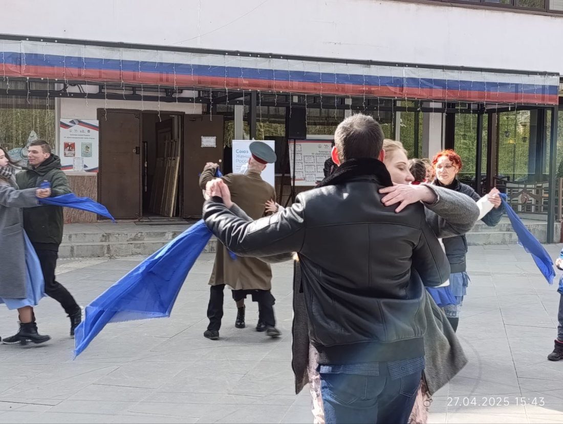 Легендарная песня про синий платочек советской эстрадной певицы, народной артистки СССР, участницы Великой Отечественной войны Клавдии Шульженко для многих стала одним из главных символов Победы. Солдаты уходили с ней в бой, вспоминали родных в короткие минуты отдыха и мечтали о скорой встрече с близкими. И сейчас, спустя 80 лет, долгопрудненцы кружили в вальсе под трогательное исполнение артистов театра «Город». Синие платочки в руках танцующих развивались, словно знаменуя надежду, любовь и память о героях войны. В руках у членов и сторонников «Единой России», принимавших участие в акции, ярко выделялись косынки и шарфики с партийной символикой.