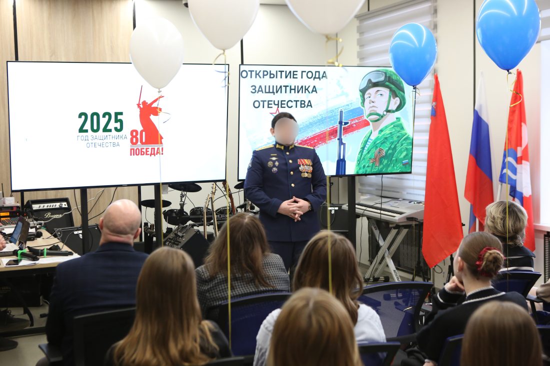 В День защитника Отечества долгопрудненское отделение «Единой России» при поддержке партпроекта «Историческая память» организовало встречу для студентов Физтех-колледжа с героем СВО Евгением С. Несмотря на выходной день и необязательный формат урока, аудитория оказалась заполненной ребятами.