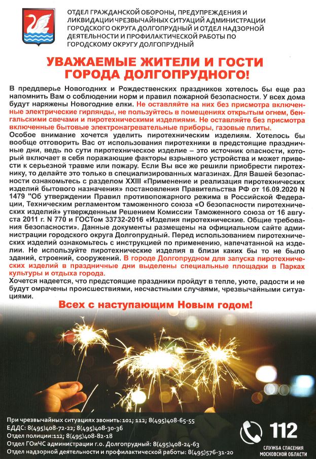 Отдел надзорной деятельности и профилактической работы по г.о. Долгопрудный и г.о. Лобня поздравляет жителей и гостей с Наступающим Новым Годом!