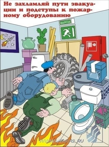 Загромождение эвакуационных путей в случае пожара может привести к непоправимым последствиям или в лучшем случае к штрафам!