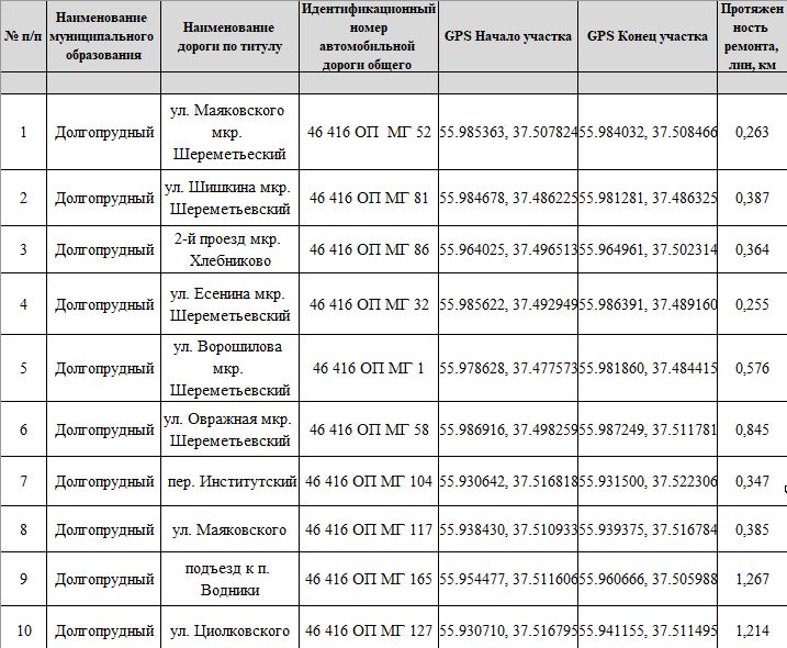 С перечнем автомобильных дорог в городском округе Долгопрудный можно ознакомиться на ресурсе «Мособлдороги.рф» (адрес: http://xn--90aecrmeoadavg.xn--p1ai/public/map?ReturnUrl=%2F#/).
