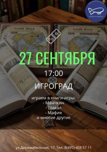 Вы сможете погрузиться в мир любимых книг, узнать знакомые истории с неожиданной стороны, проверить свои знания и проявить фантазию. В «ИгроГраде» вас ждут захватывающие квесты, викторины и ролевые игры. Выбирайте на свой вкус – «Манчкин», «Шакал», «Мафия» и др.
