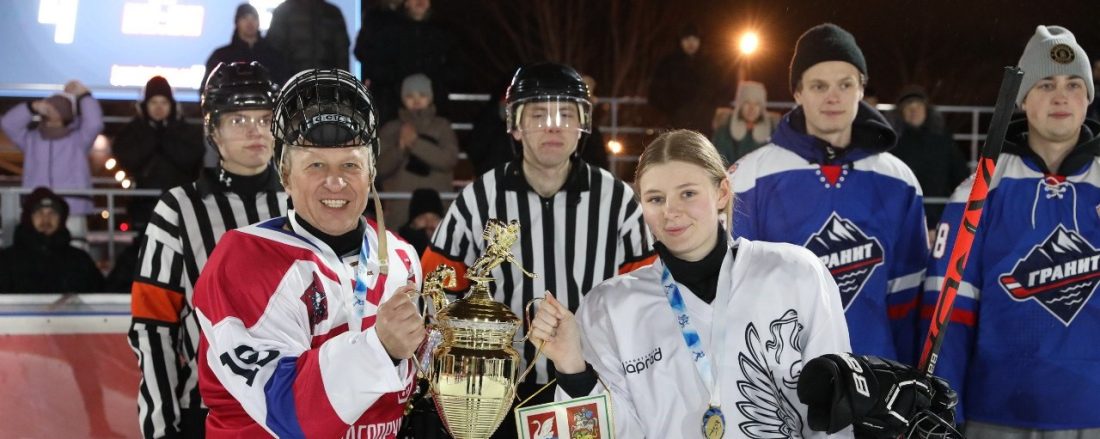 Завершился матч со счётом 9:5 в пользу команды Олега Сотника. Но победила, разумеется, дружба. Все участники игры получили медали, лучшим игрокам достались специальные награды, а памятный кубок предновогоднего матча глава Долгопрудного вручил капитану команды жителей Вере Александровой.