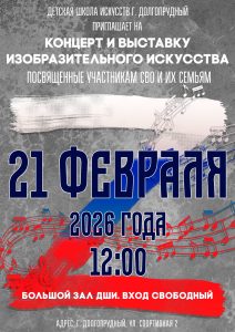 21 февраля Детская школа искусств приглашает на концерт, приуроченный к Дню защитника Отечества и посвящённый участникам СВО и их семьям.