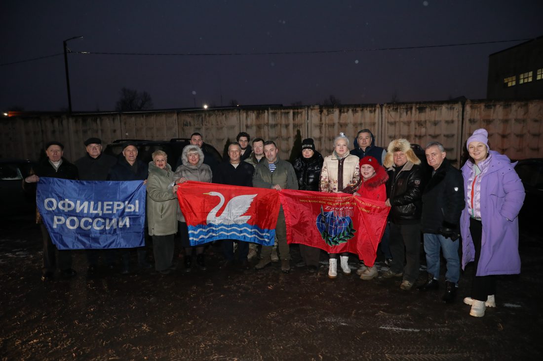 Пожелать доброго пути и помочь бригаде собраться в дорогу пришли волонтёры, готовившие груз к отправке, и глава Долгопрудного Олег Сотник.