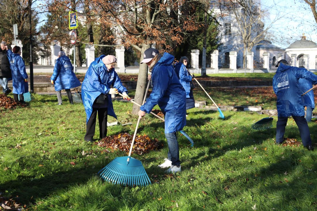 Свадебный сквер – красивое, знаковое место в нашем городе. Сегодня, 5 ноября, здесь высадился трудовой десант – одиннадцатиклассники школы №9 и участники клуба «Активное долголетие».