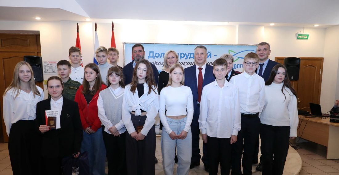 Вместе с паспортом юные долгопрудненцы получили брошюру Конституции РФ и сувениры с символикой нашего города.