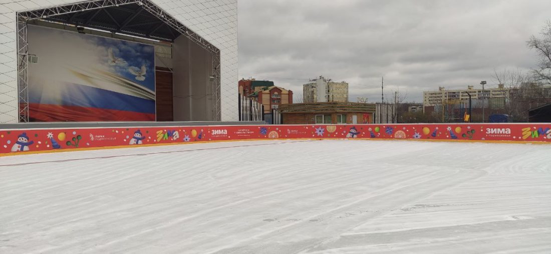 «Уже установлены и брендированы борта, проложены айс-маты, по которым циркулирует хладоноситель, завершается поэтапная заливка катка, — рассказал директор объединённой дирекции парков г. о. Долгопрудный Сергей Пятковский. – Толщина льда сегодня составляет порядка 10 см, а во время заливки верхнего слоя на лёд будет нанесён логотип «Зима в Подмосковье». Готова тёплая раздевалка, будет работать прокат коньков».
