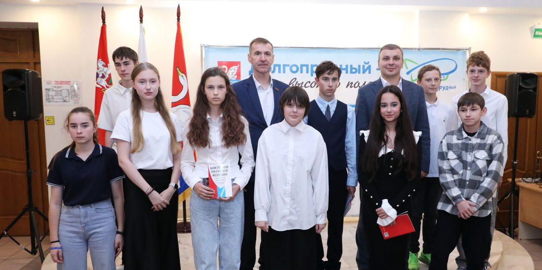 Детям вместе с паспортом были вручены брошюра с текстом Конституции РФ и сувениры с символикой Долгопрудного. Для всех прозвучала песня о Родине.