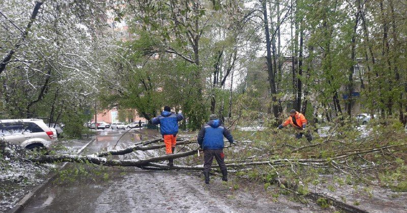 В результате аномального майского снегопада в Долгопрудном поваленными оказались более сотни деревьев.