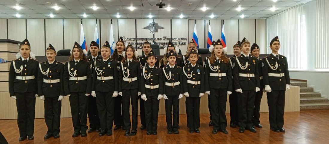 Кадеты исполнили несколько музыкальных номеров и поздравили весь присутствующий состав полиции с наступающим праздником.
