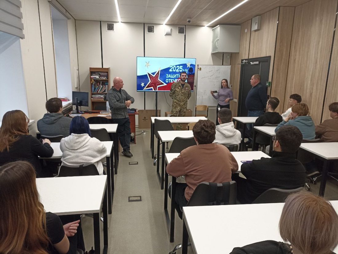 3 декабря в Физтех-колледже прошёл Урок мужества. О специальной военной операции и подвигах защитников наших Родины студентам рассказали куратор Центра поддержки участников СВО и их семей г.о. Долгопрудный Александр Шаров и участник СВО Андрей.