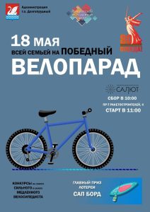 18 мая в Долгопрудном состоится торжественное открытие велосезона, в этот день по традиции пройдет большой велопарад! Он будет посвящен 80-летию Победы. Велосипедисты покорят дистанцию в 4 км, по улицам города.