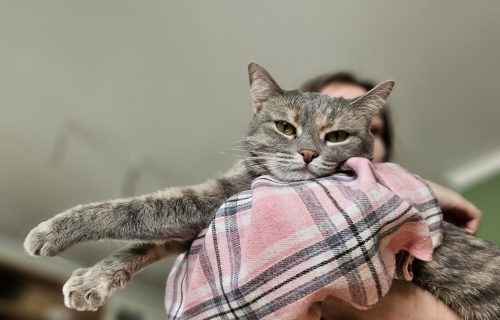 Владислав Кириченко, возвращаясь с работы, заметил на проспекте Пацаева кошку. Животное с надеждой поглядывало на людей и мяукало. Владислав понял, что оставлять её так нельзя, и забрал малышку.