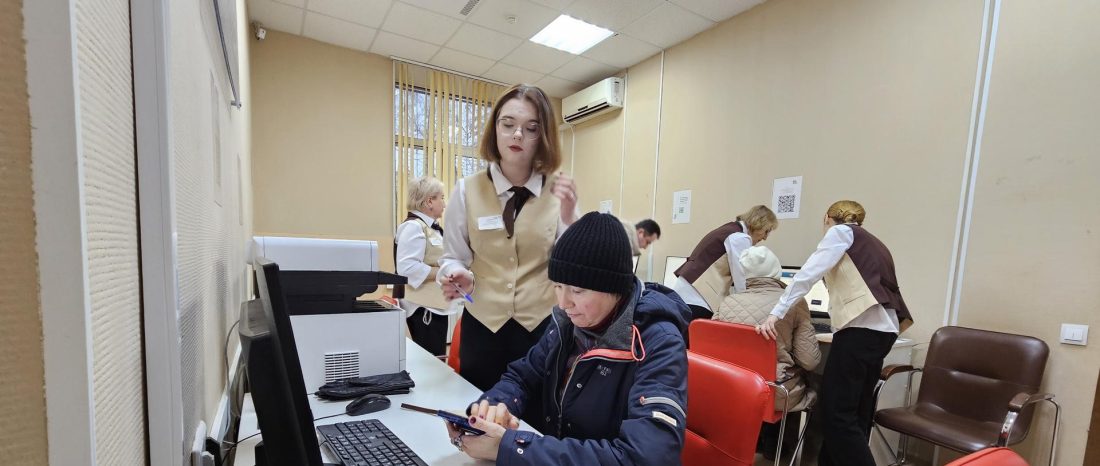 Молодёжь 14-18 лет приходит сюда, чтобы получить навыки работы с людьми и документами. Школьники консультируют посетителей у распределительного терминала при входе в Многофункциональный центр и помогают на общественных точках доступа к порталам госуслуг.
