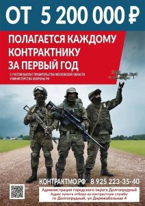 Подробную информацию о службе по контракту для жителей Долгопрудного можно получить в Пункте отбора на военную службу по контракту (ул. Дирижабельная, д. 4). Он работает с понедельника по пятницу, с 9:00 до 18:00.