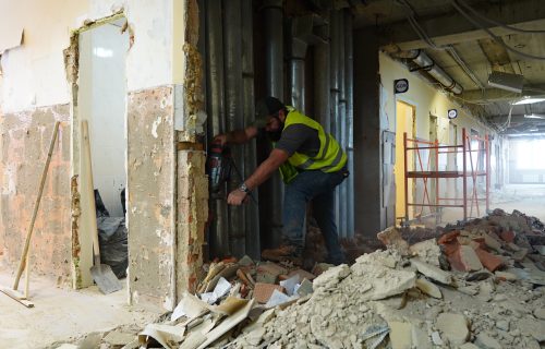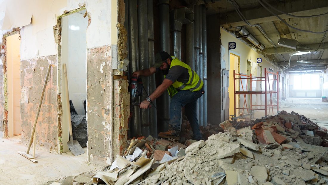 Сейчас, в рамках первого этапа, демонтажные работы идут на 6 и 7 этажах поликлиники. Здесь ранее располагались дневной стационар, рентген, УЗИ, лучевая диагностика, вели приём терапевты. Для них освободили и подготовили новые кабинеты.