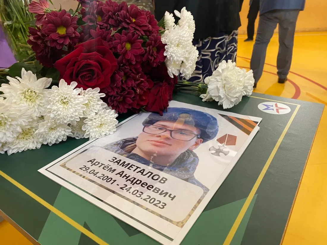 Также в школе установлен памятный стенд в честь Артёма Заметалова. Здесь его вещи, фото, награды и цветы для него.