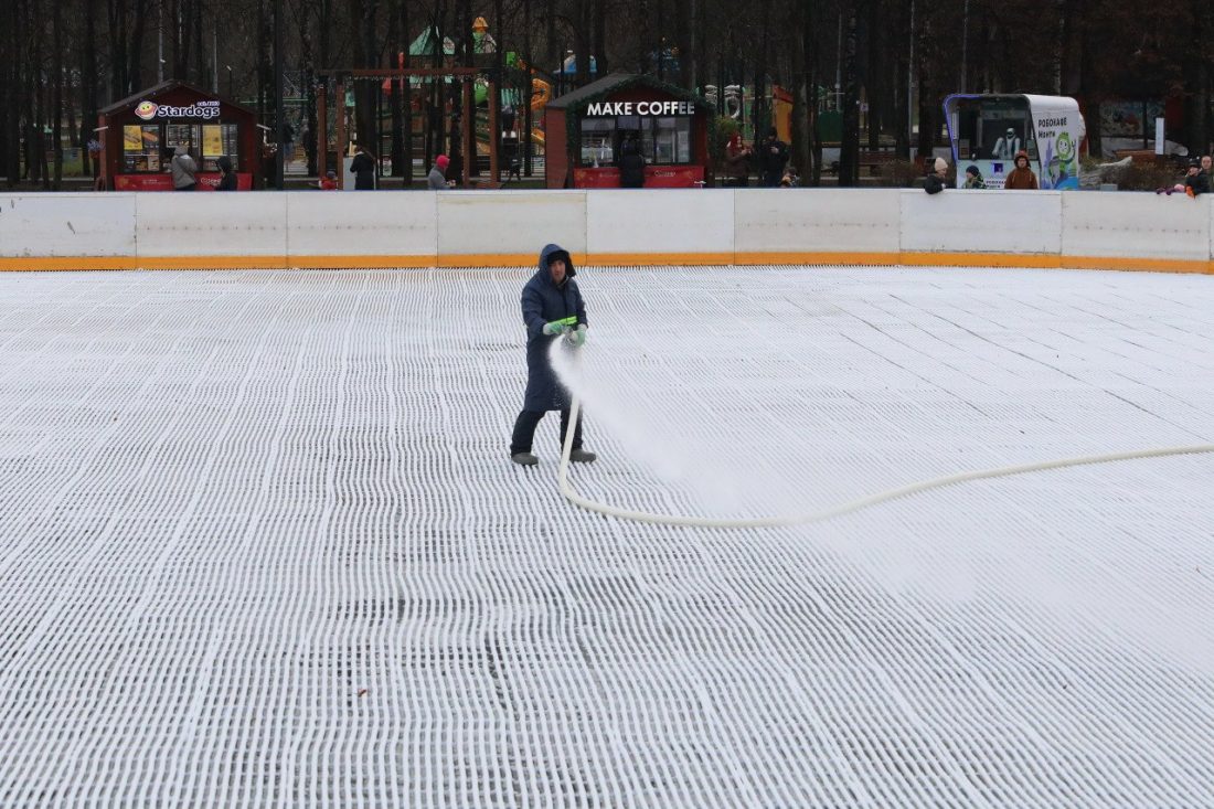 Сегодня в Центральном парке Долгопрудного приступили к заливке катка.
