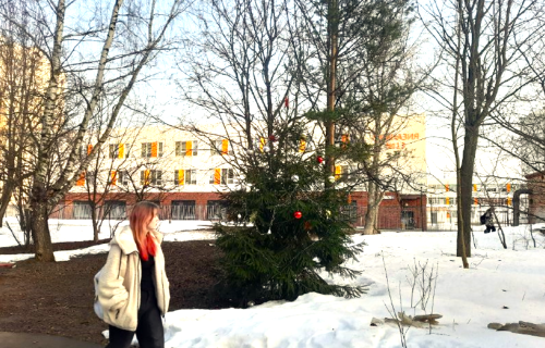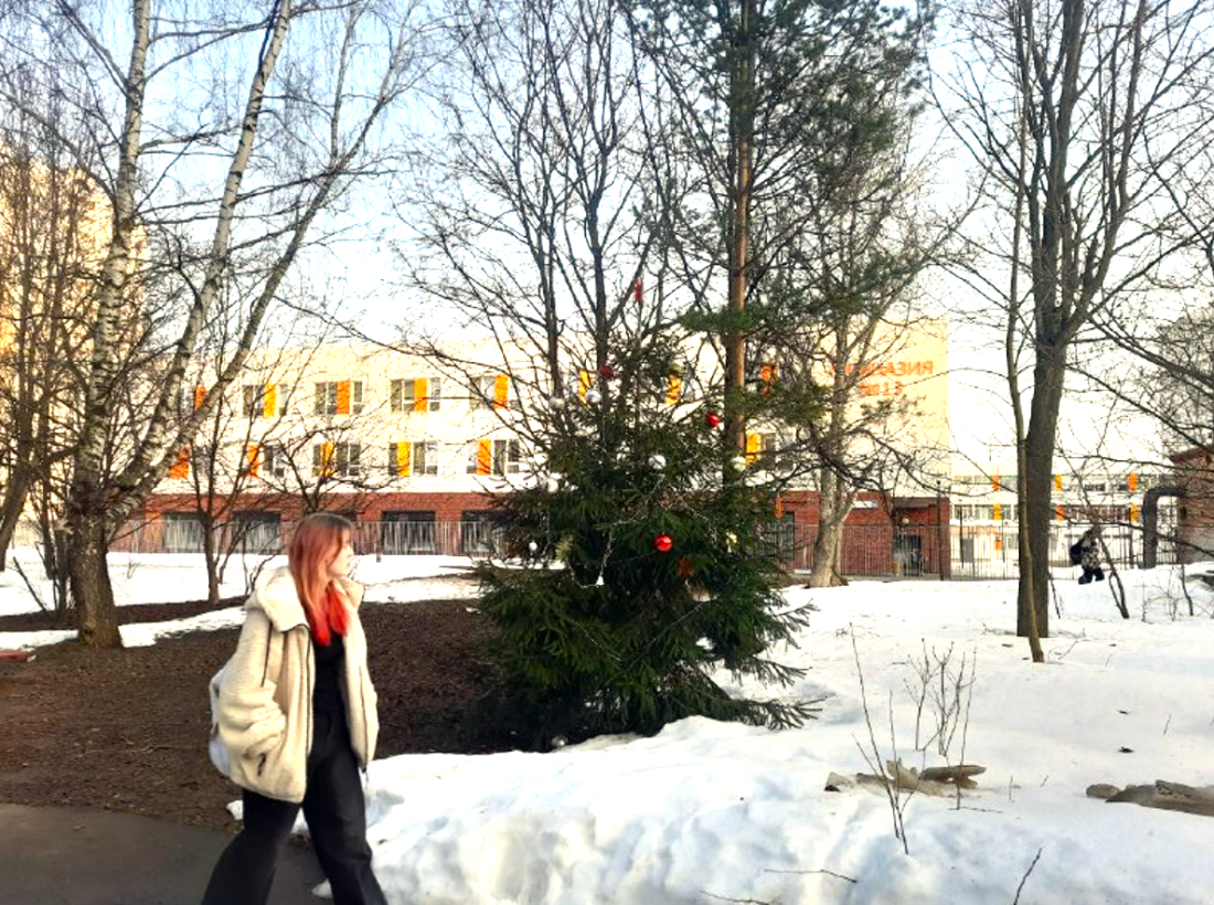 «Ёлка у нас шикарная. Она не ставится, а растёт здесь уже не один год. УК «Дирижабль» украсила красиво. Мы её любим и нарядную, и обычную. Будет время – разберут», — считает жительница дома № 10 Ирина Маслова.
