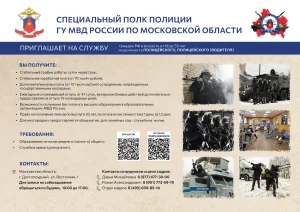 Специальный полк полиции ГУ МВД России по Московской области, дислоцирующийся в Долгопрудном, приглашает на службу граждан РФ в возрасте от 18 до 50 лет.