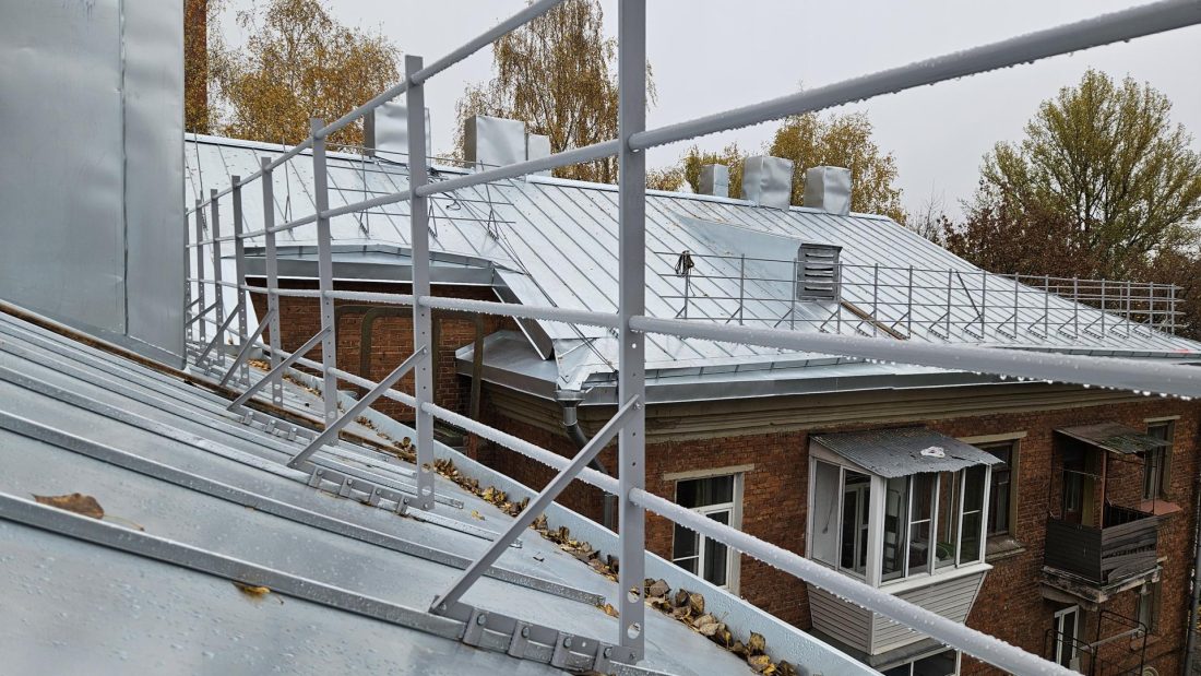 В трёхэтажном многоквартирном доме №22 по улице Циолковского идёт капитальный ремонт скатной крыши. Работы проводит подрядная организация Фонда капитального ремонта Московской области.