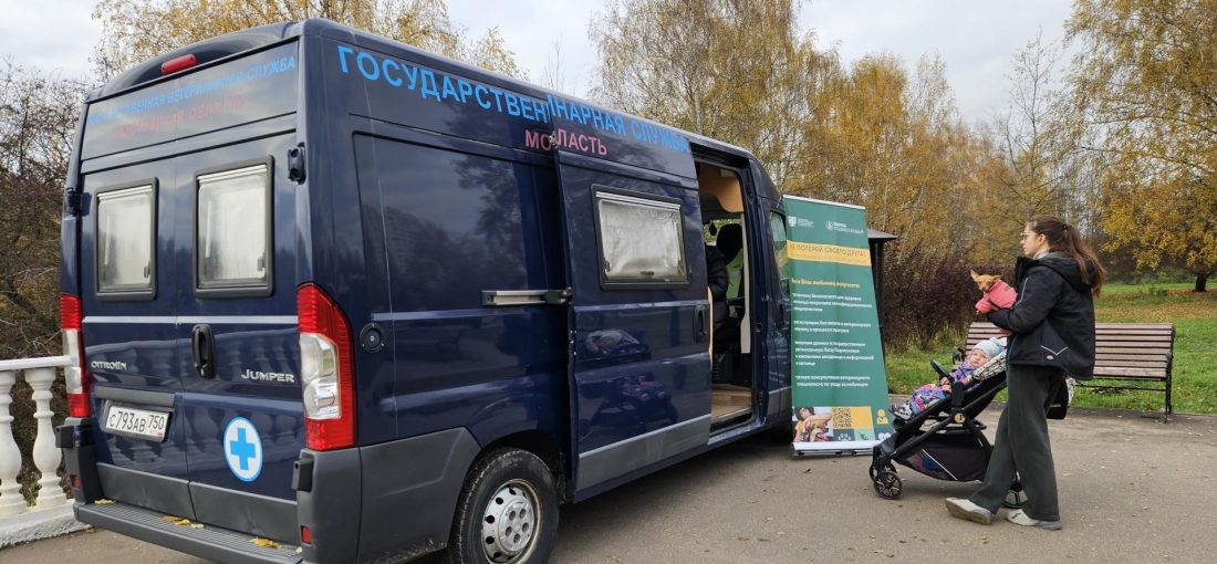 В парке на ул. Молодёжная прошла акция по регистрации и чипированию домашних питомцев. Мобильный офис Госветслужбы Подмосковья расположился на смотровой площадке.