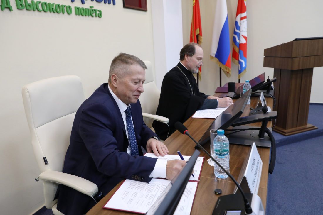 Сегодня в Долгопрудном состоялась рабочая встреча главы Долгопрудного Олега Сотника, благочинного городского церковного округа протоиерея Андрея Хмызова и руководителей муниципальных подразделений силовых структур.