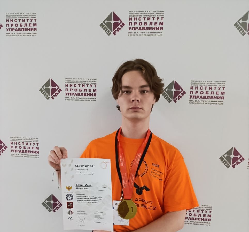 Студент 3 курса Физтех-колледжа Илья Канин, под руководством эксперта-наставника Липатниковой Надежды Михайловны, занял 1 место и вышел в финал! Он состоится с 17 по 25 сентября в Великом Новгороде.