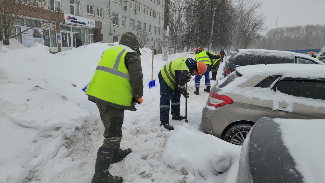 Несмотря на продолжающуюся метель, они пытаются обеспечить безопасный и свободный доступ для всех пациентов медицинского учреждения.