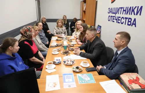 26 февраля глава Долгопрудного Олег Сотник встретился с матерями и жёнами участников спецоперации. В встреча состоялась в городском Центре поддержки участников СВО и их семей. В ней также приняла участие социальный координатор фонда «Защитники Отечества» Валентина Симонян.