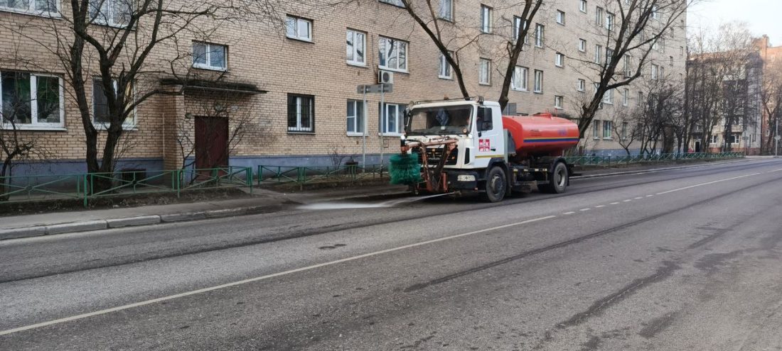 В Долгопрудном вновь можно увидеть на дорогах поливальные машины. Также в городе идут уборка территорий и ямочный ремонт.