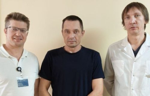Заведующие отделениями сосудистой и эндоваскулярной хирургии нашей больницы Алексей Варин и Владимир Сорокин приняли решение применить для лечения больного гибридный метод: проведена сложнейшая операция по удалению тромба и атеросклеротических бляшек из бедренных артерий и выполнена её пластика. Затем установлен стент в подвздошную артерию.