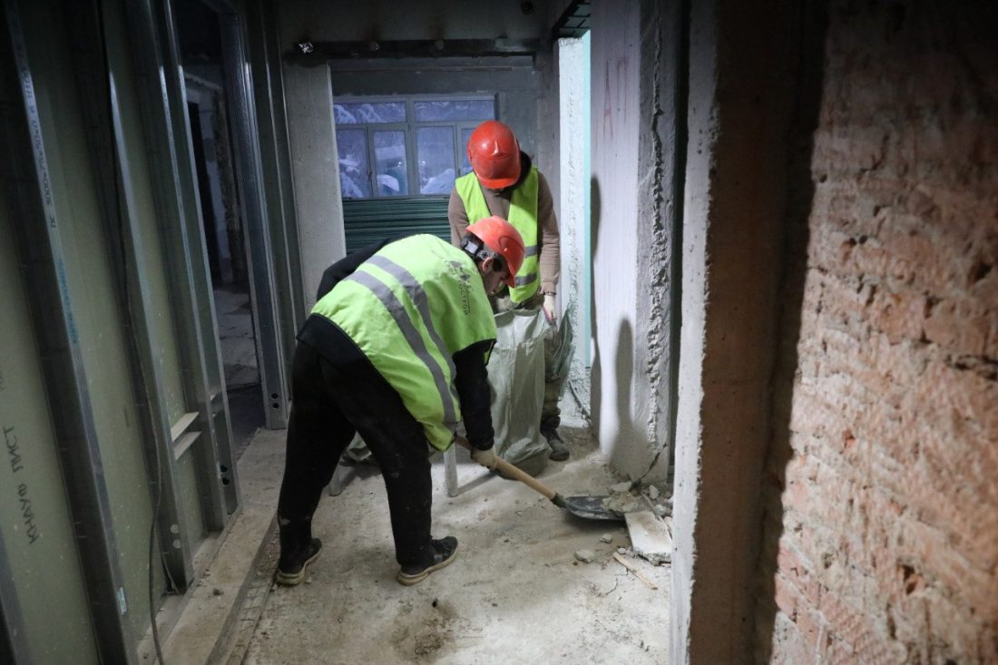 На сегодняшний день на объекте трудятся 23 человека. Как доложил подрядчик, полностью завершены демонтажные работы, выполнена перепланировка, рабочие проводят усиление проёмов.
