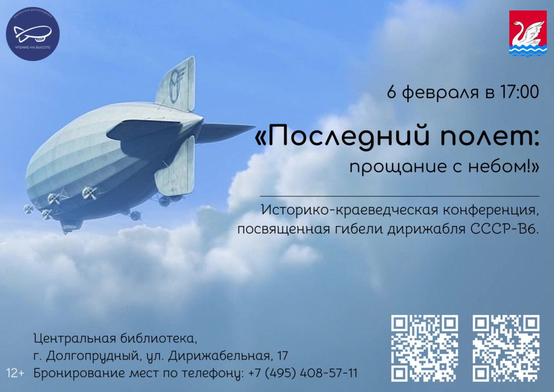 К годовщине гибели команды легендарного дирижабля «СССР В-6» в Центральной библиотеке Долгопрудного завтра, 6 февраля, пройдёт историко-краеведческая конференция «Последний полет: прощание с небом!».