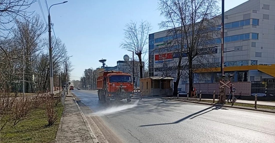 В Долгопрудном весна. На дорогах и тротуарах вновь можно увидеть поливальные машины. Также в городе продолжается уборка территорий.