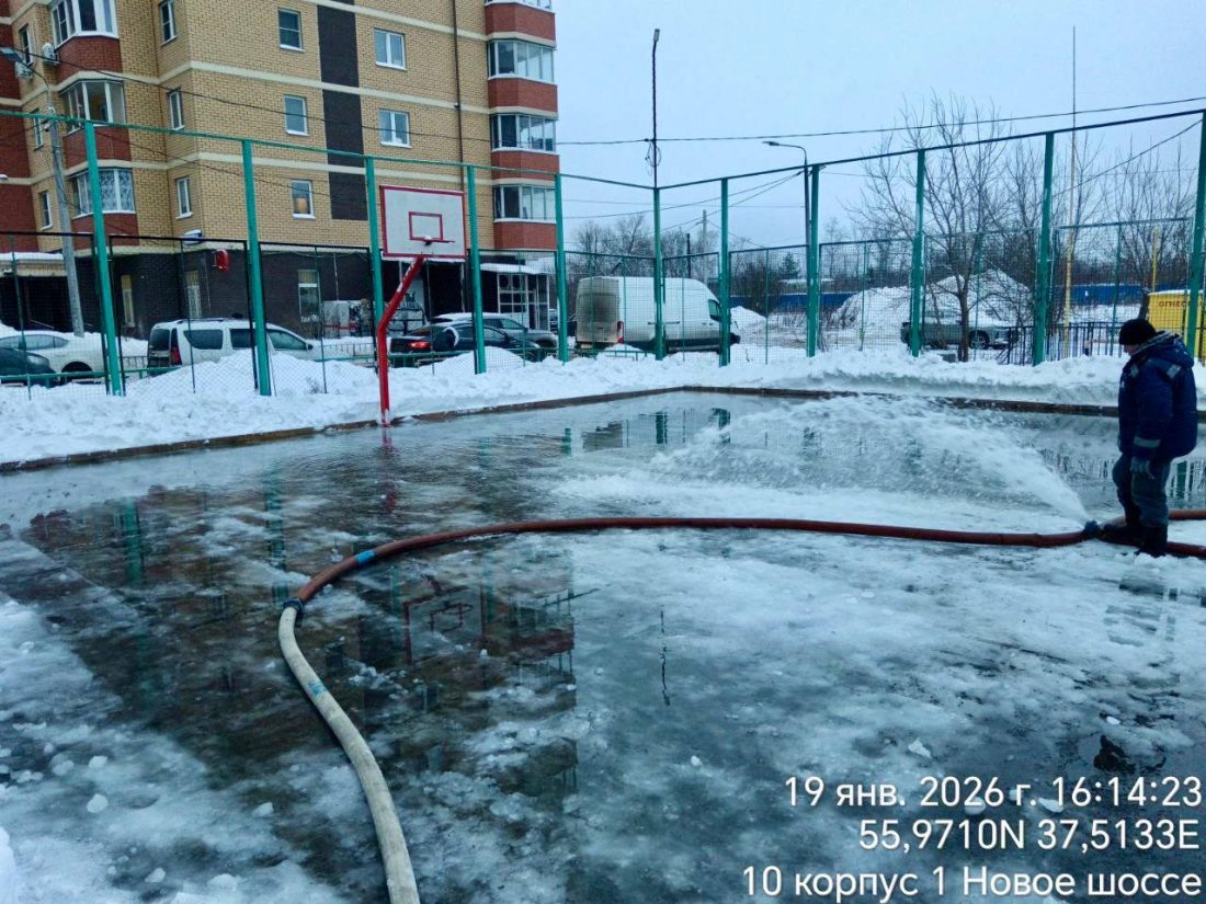 В мкрн Хлебниково, на Новом шоссе, 10, корп. 1, началась заливка катка (на территории баскетбольной площадки).