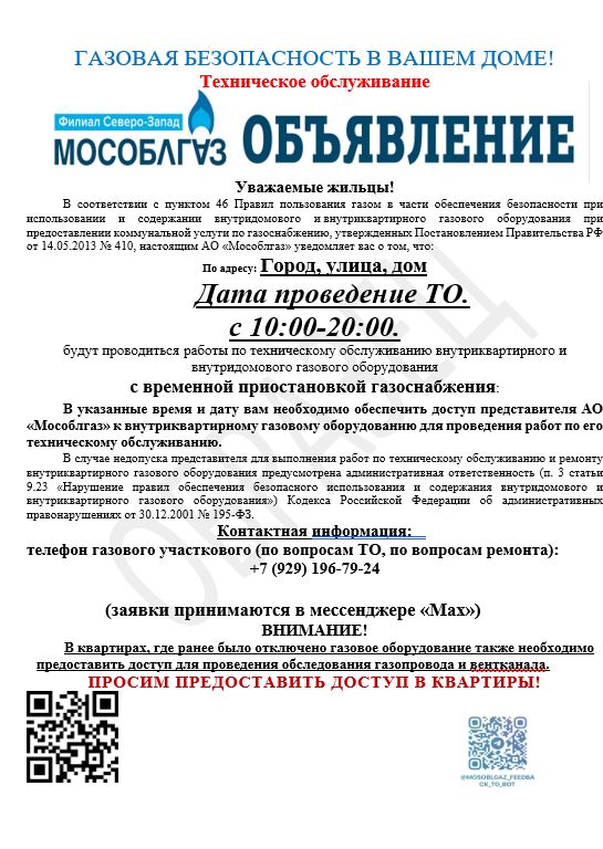 С 1 января 2024 года в Долгопрудном, как и во всем Подмосковье, услугу по техническому обслуживанию (ТО) газового оборудования предоставляет только компания АО «Мособлгаз». Проводится ТО не реже 1 раза в год и является обязательным условием для поставки газа!