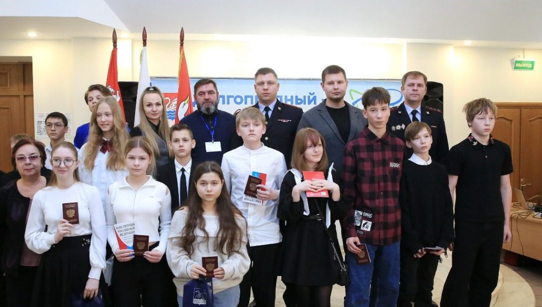 Вместе с паспортом молодые россияне получили сувениры с символикой Долгопрудного и Конституцию РФ.