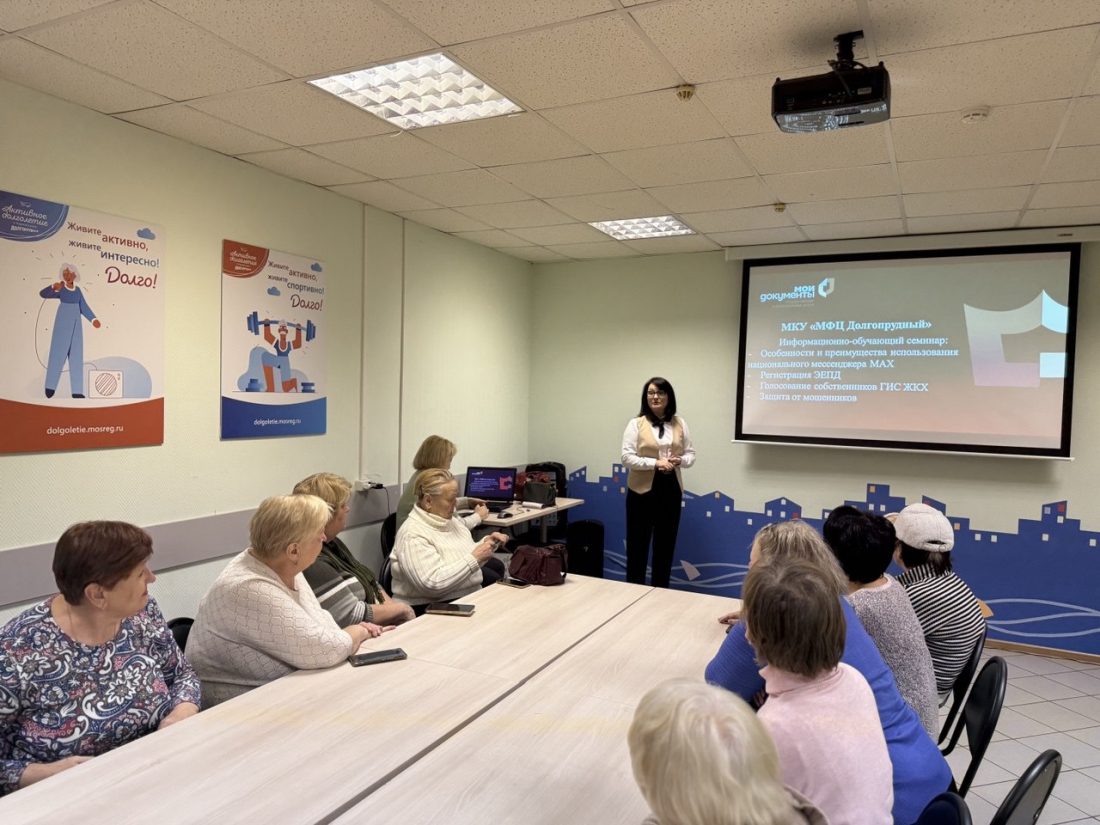 20 ноября в Долгопрудном состоялся важный информационно-обучающий семинар для граждан старшего возраста, организованный сотрудниками МФЦ вместе с Центром культурно-общественных связей.