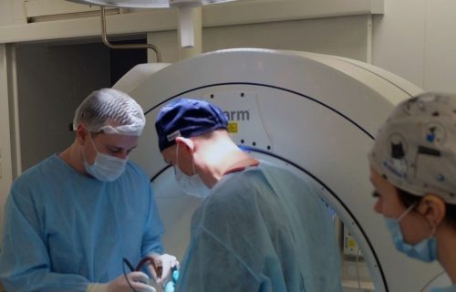КТ выявила у больного внутримозговое кровоизлияние в правой теменно-затылочной области. Бригада нейрохирургов под руководством Шамиля Сагариева, при участии анестезиолога-реаниматолога Маргариты Киселёвой экстренно выполнила малоинвазивную операцию — трефинацию черепа с удалением внутримозговой гематомы.
