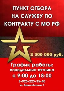 Подробную информацию о службе по контракту для жителей Долгопрудного можно получить в Пункте отбора на военную службу по контракту (ул. Дирижабельная, д. 4). Он работает с понедельника по пятницу, с 9:00 до 18:00. Задать дополнительные вопросы можно по телефону 8-925-223-35-40.