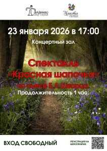 23 января в 17:00 – «Красная Шапочка» (по пьесе Евгения Шварца) – расширенный авторский сюжет известной сказки;
