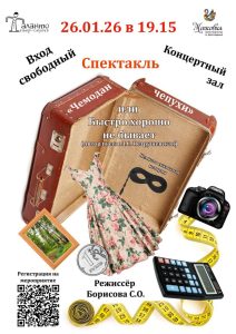 26 января в 19:15 – «Чемодан чепухи» (по произведению Людмилы Петрушевской) – история о том, что в любом деле нужно быть профессионалом, и в которой каждый герой получает по заслугам.