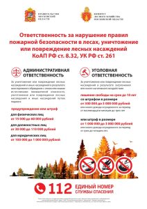 Напомним, что законодательством РФ предусмотрены наказания за нарушения требований пожарной безопасности. Подробнее об этом – в прикрепленной листовке.